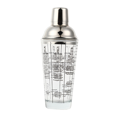 Verre Transparent Shaker Tasse En Acier Inoxydable Cocktail Shaker Ensemble Shaker Spécial pour Citron Thé Lait Avec Échelle Pratique